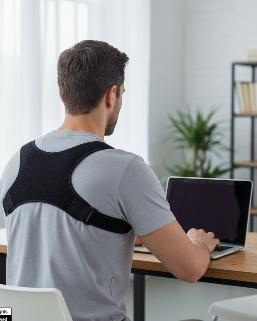 This posture corrector helps guide your body into a healthier sitting position by preventing common slouching habits. Its supportive structure gently aligns your shoulders and upper back, reducing the strain caused by long hours at a desk. Made from soft and elastic material, it stays comfortable throughout the day for both men and women. Whether working, studying, or using a computer, it encourages proper posture and helps shape a naturally confident figure.